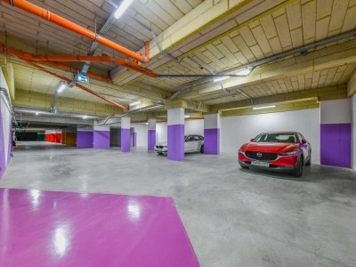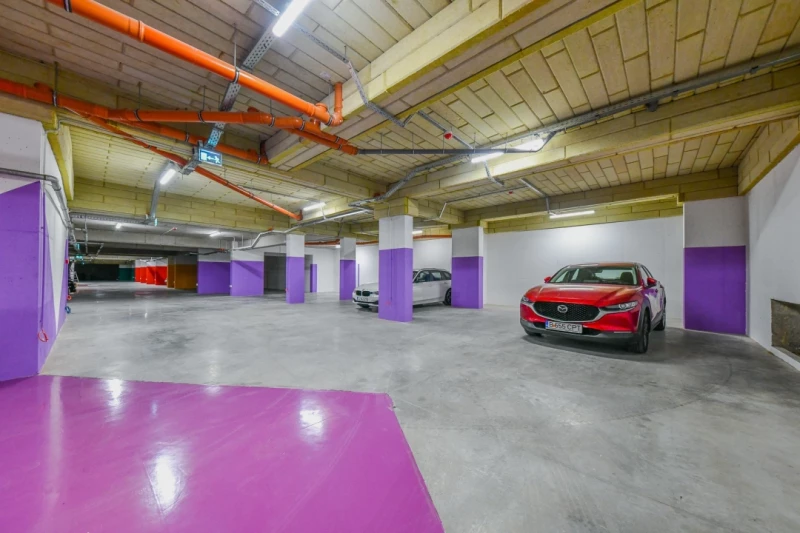 Ansamblul este dotat cu facilități moderne pentru confortul și siguranța rezidenților, incluzând parcări subterane și boxe pentru depozitare.