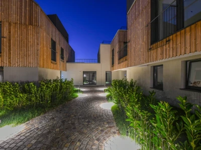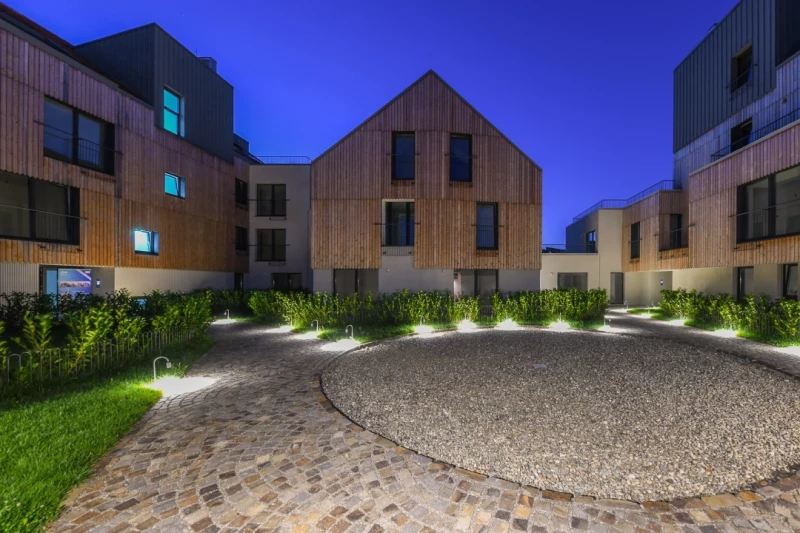 Fiecare corp adăpostește apartamente spațioase, completate de grădini și terase generoase, concepute pentru relaxare și funcționalitate.