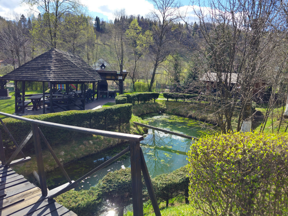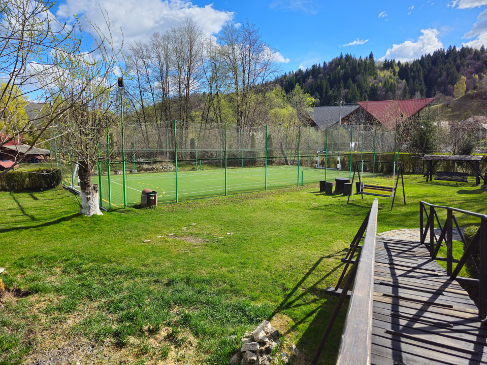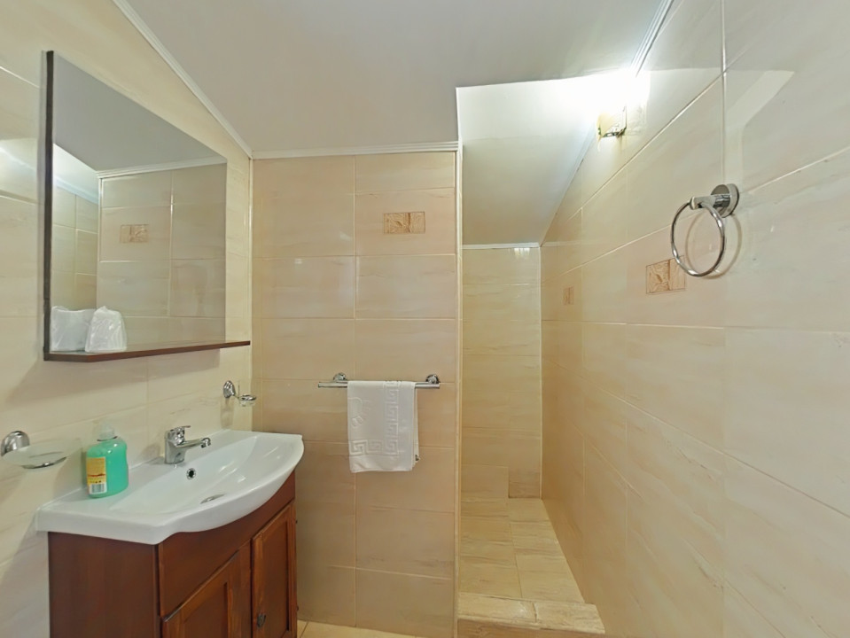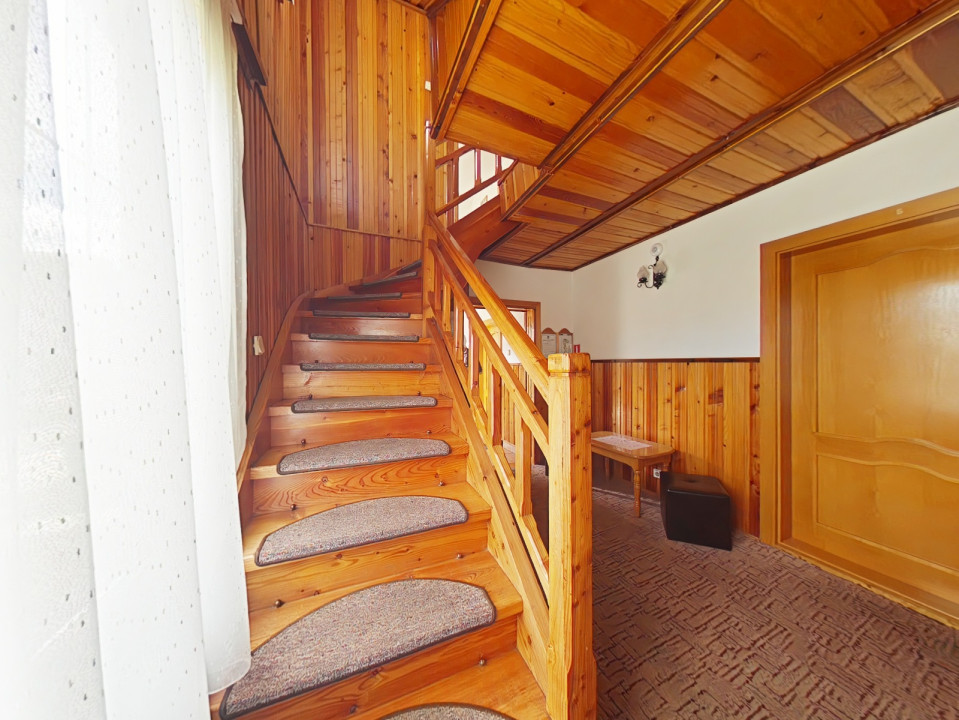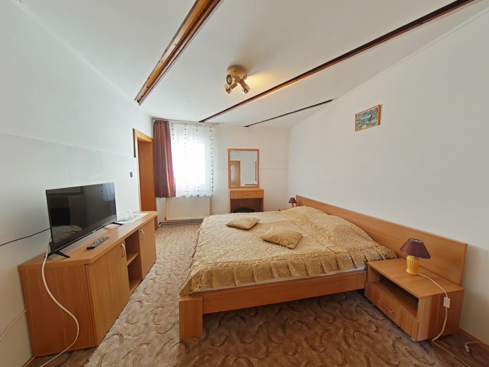 Casa dispune de 4 camere spațioase: două camere duble cu băi proprii și două camere triple, fiecare având și băi private. Cu o suprafață generoasă de 180 mp utili și facilități bine întreținute, această proprietate este perfectă pentru familiile sau grupurile care doresc să petreacă timp în natură.