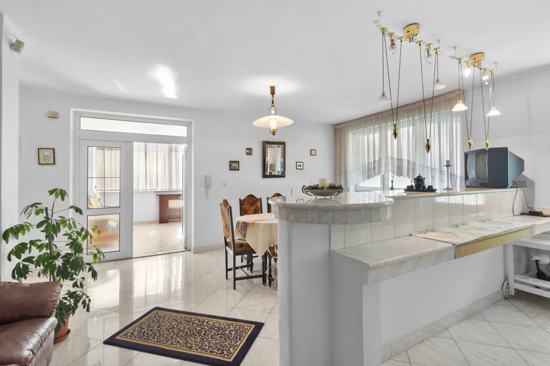 Imobilul, edificat în anul 1997, se desfășoară pe patru niveluri – subsol, parter, etaj și mansardă (S+P+E+M) – și dispune de o suprafață totală utilă de 440,91 mp, fiind amplasat pe un teren de 458 mp. Construită cu grijă pentru detalii și o compartimentare inteligentă, casa este compusă din opt camere, dintre care patru dormitoare spațioase, un living generos, doua bucătării, patru băi complet utilate, două dressinguri, precum și alte spații anexe care răspund cu ușurință nevoilor unei familii moderne.